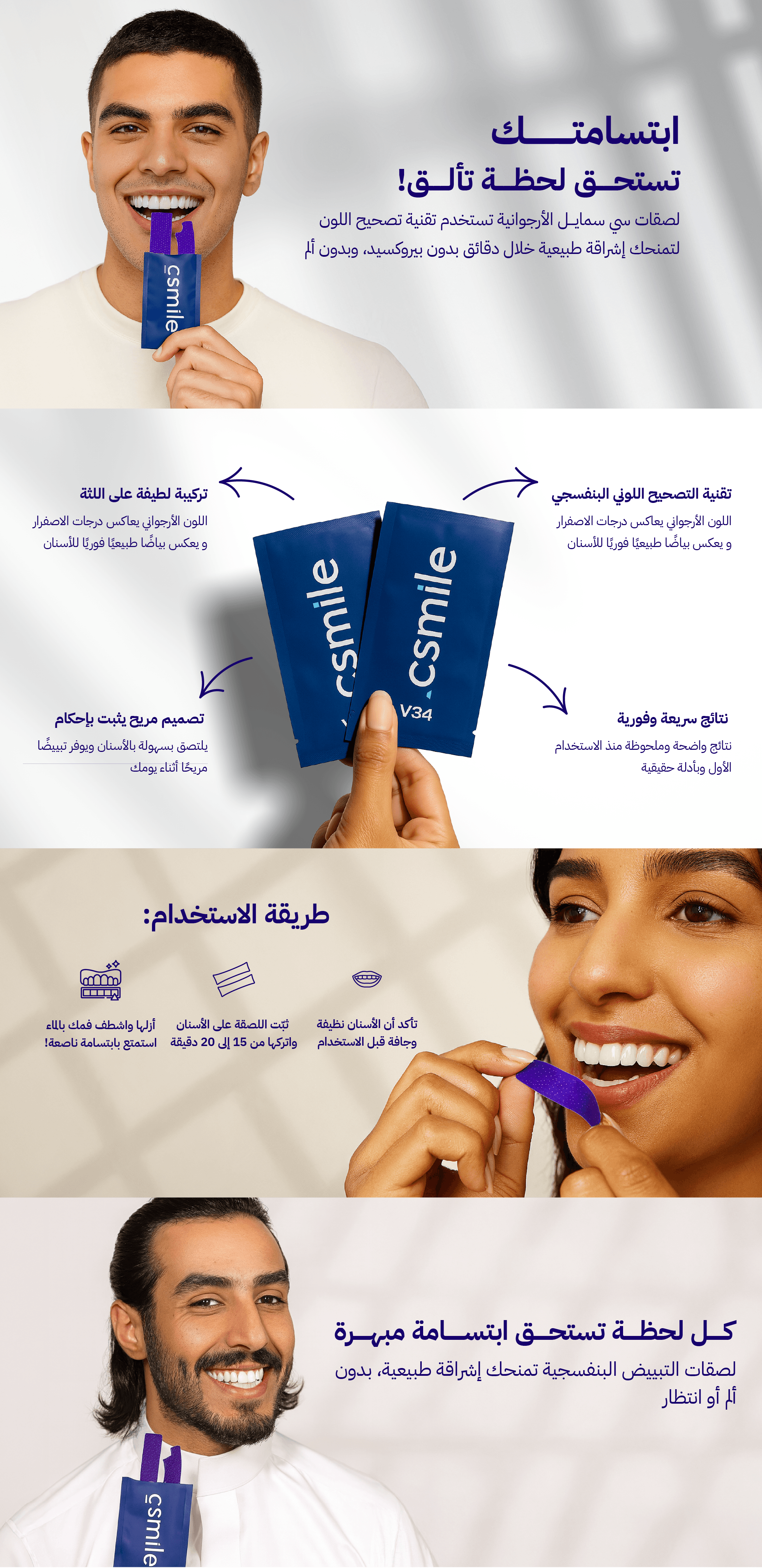جدد ابتسامتك مع لصقات التبييض الأرجوانية المبتكرة. تزيل التصبغات بفعالية وتمنحك أسنانًا أكثر بياضًا وإشراقًا في وقت قياسي